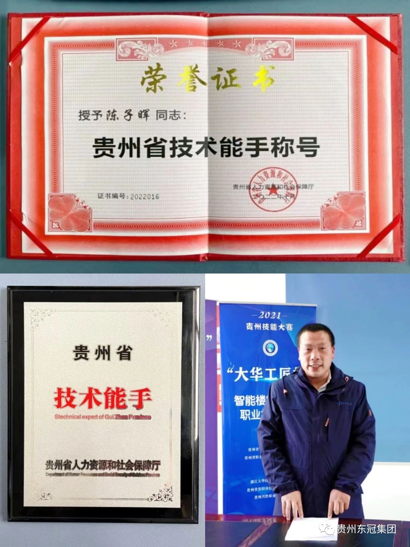 2021年12月,我司陈子晖同志在贵州安防协会联合贵州省职业技能鉴定考评指导中心、浙江大华技术股份有限公司举办的“大华工匠杯”智能楼宇管理员职业技能竞赛中,荣获得竞赛第一名,根据职业技能竞赛有关规定,经省人社厅审核,授予了我司陈子晖同志“贵州省技术能手”称号,并颁发奖牌和荣誉证书。